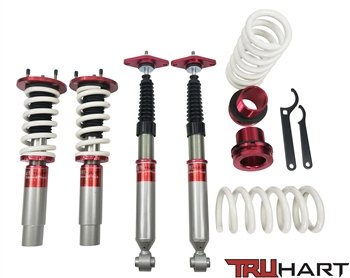Featuring a full twin tube design with integrated aluminum top mounts, the StreetPlus coilover is an ideal solution for today’s budget-minded tuner looking to lower their vehicle and increase handling performance. The independently adjustable lower mount allows fine tuning of a vehicle’s height without sacrificing shock travel, resulting in a sporty yet comfortable ride on the street or strip.
